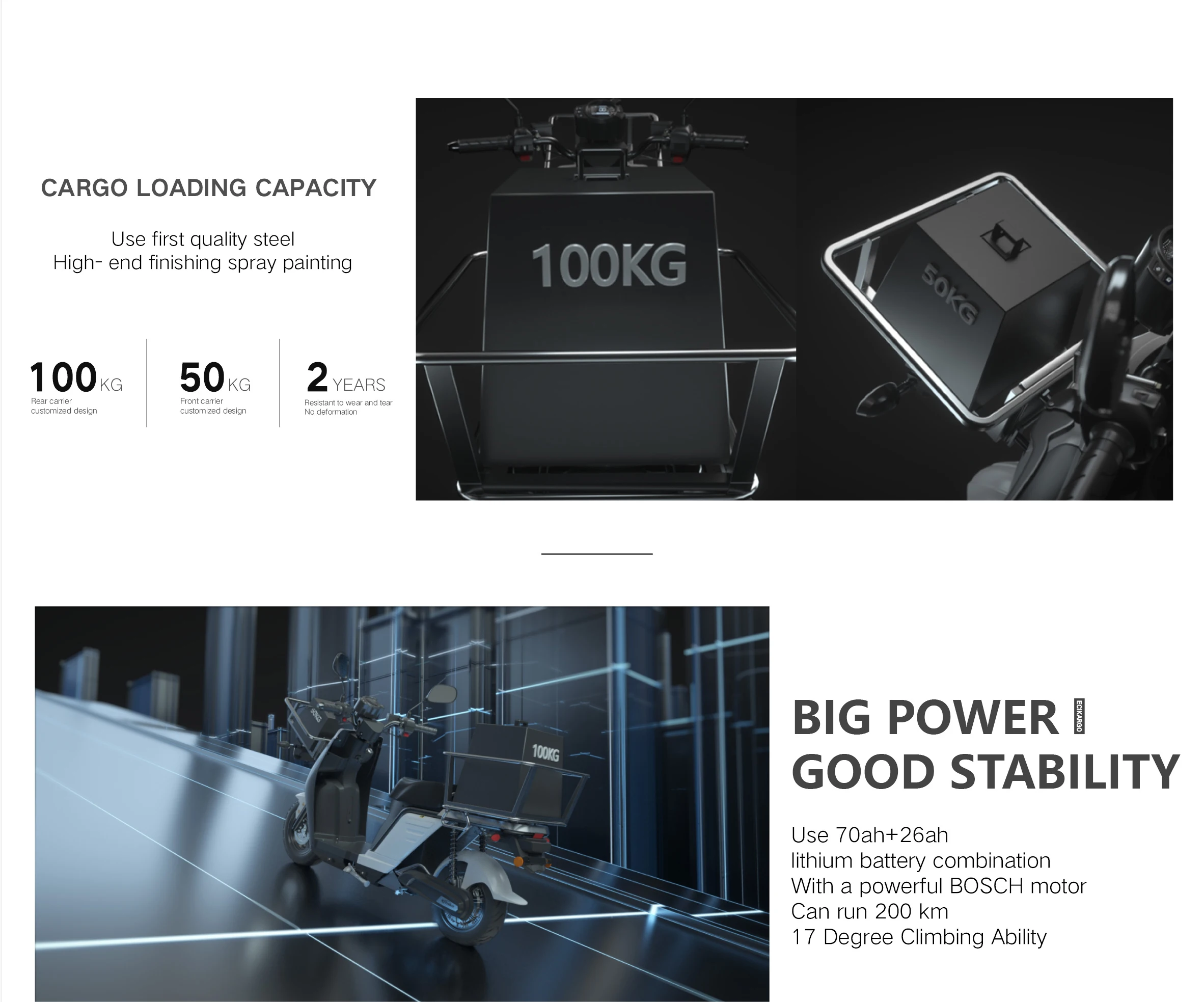 Το EkoCargo διαθέτει έναν ισχυρό ηλεκτροκινητήρα Bosch 3.000 Watt